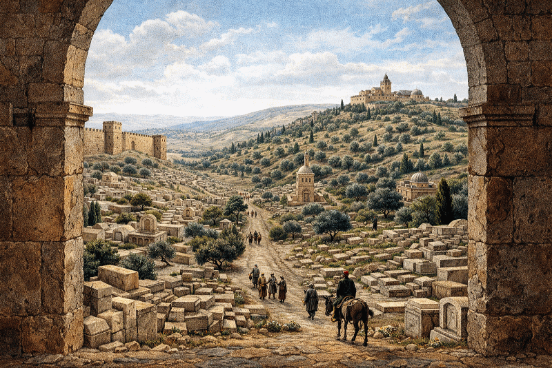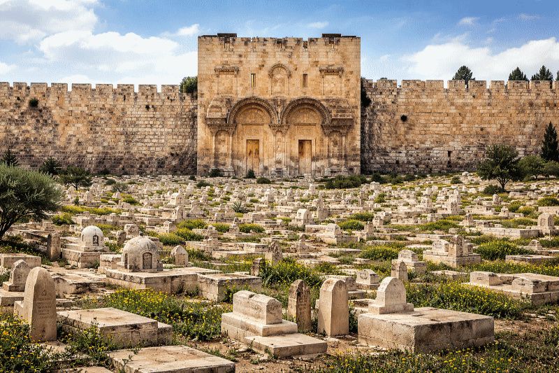 閉ざされた黄金門のすぐ外側はイスラム教徒のお墓です ChatGPTの作図です ![]() |